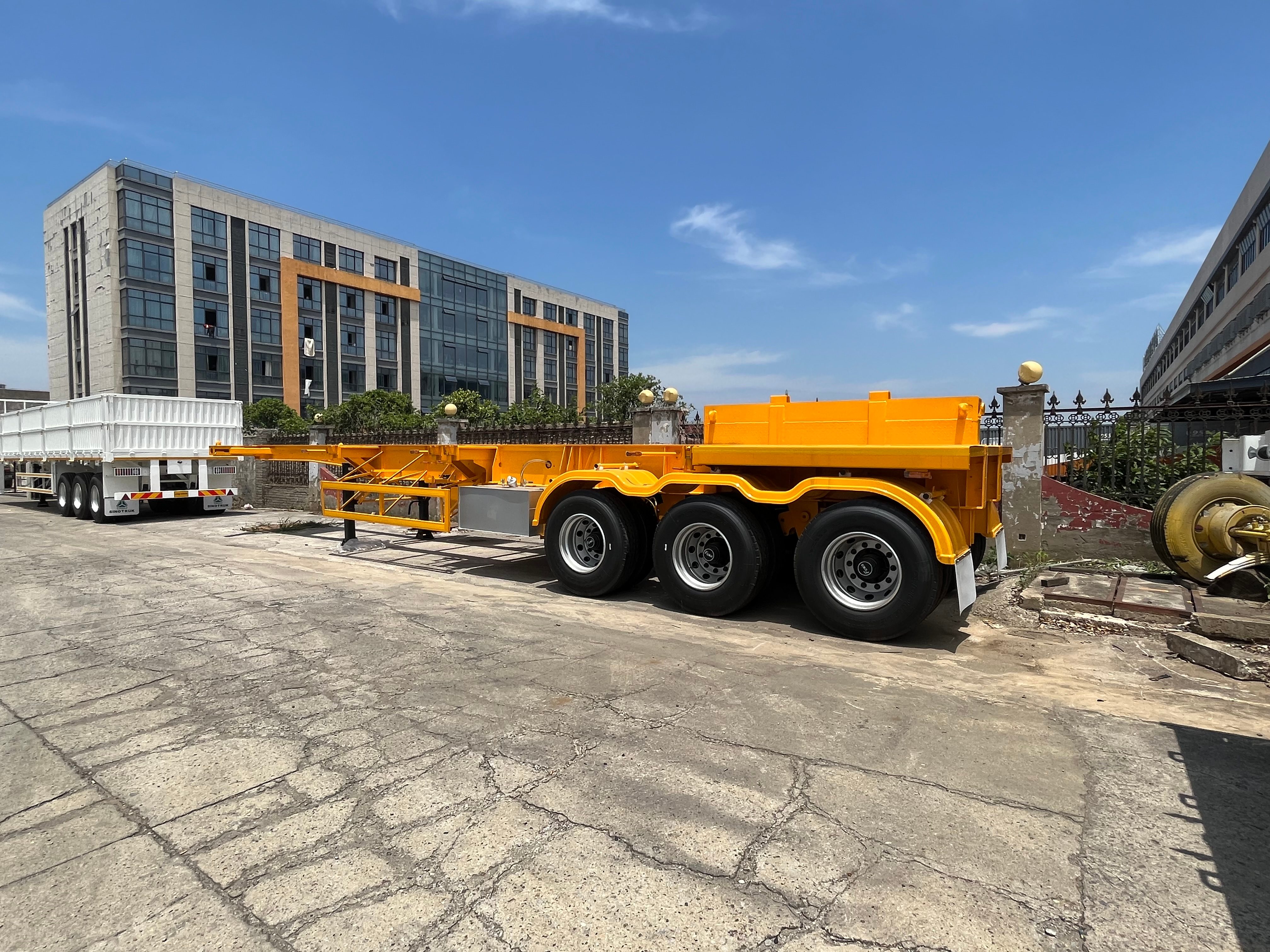 - Εξαιρετική φέρουσα απόδοση: Εξοπλισμένο με τριαξονικό πλαίσιο υψηλού φορτίου, η κατανομή φορτίου ενός μόνο άξονα είναι ομοιόμορφη και η συνολική φέρουσα ικανότητα είναι ισχυρή. Μπορεί εύκολα να προσαρμοστεί σε διάφορα τυπικά εμπορευματοκιβώτια, όπως 20 ποδιών και 40 ποδιών, ικανοποιώντας τις απαιτήσεις βάρους μεταφοράς διαφορετικών εμπορευμάτων.